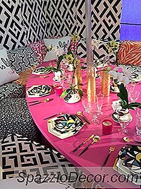 Stabilind scena cu o masă roz roz, Diane von Furstenberg a lucrat cu Kravet pentru a construi un spațiu de luat masa în aer liber, care este aproape ca o lecție de geometrie. Bold țesături grafice jucat cu cină bine și tacâmuri elegant, în timp ce sticla curvaceous relaxat senzația generală.