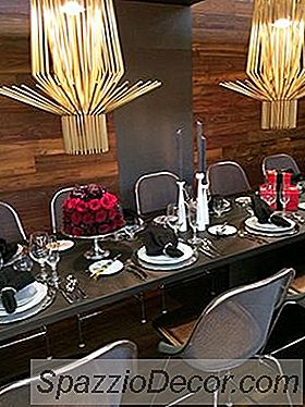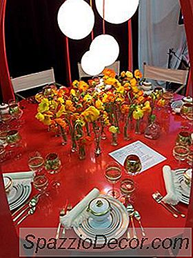 Amplasat de Marc Blackwell, această masă rotundă, lăcuită de culoare roșie, o păstrează simplu cu lămpi orb cu straturi, servetele albe (cu bretele!) Și o colecție de aranjamente cu flori unice. Obiectele clasice de cină din aur și dansuri de eleganță exudate.