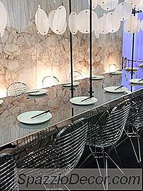 Pregătește-te pentru a lovi podeaua în timpul meselor. Casa Calvin Klein a organizat o cameră inspirată de japonezi, completată cu scaune de masă din lemn și pardoseală regenerată. În timp ce o atingere de lux este adus prin intermediul atelierului de alamă, vinurile și plăcile palide îl aduc înapoi la natură.