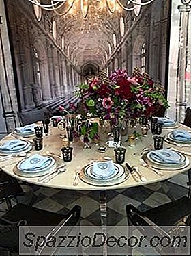 Philip Gorrivan a proiectat o masă potrivită pentru redevența italiană, folosind oțet cvadată cu platină și unelte din fier forjat de la Fendi Casa. O piesă centrală florală de mari dimensiuni, cu un indiciu de romantism întunecat, a adăugat un pop de culoare.