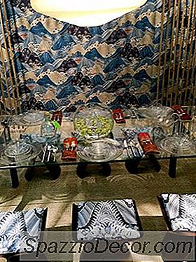Beacon Hill a colaborat cu designul duo Jayne și Joan Michaels de la 2Michaels Design pentru a crea o experiență culinară liniștită, cu vibrații orientale. Mergând la plăci de sticlă și un terariu de masă pentru o atingere de verdeață, designerii au adăugat textura vizuală prin țesături albastre, bambus și un singur felinar silențios.