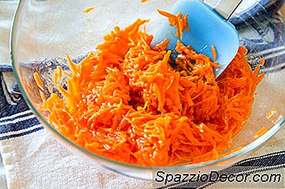 Pasul 2: Într-un castron separat, mai mic, amestecați morcovul răzuit (puteți fie să grăbiți morcovii cu mâna cu o răzătoare de cutie, fie să folosiți un procesor de bucătărie) ou, iar untul topit și răcit împreună.