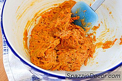 Pasul 3: Se toarnă amestecul de morcov în castronul de făină și se amestecă până se combină bine. Asigurați-vă că nu amestecați aluatul.