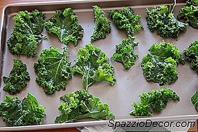 Pasul 2: Aruncați frunzele de kale cu ulei de măsline, sare și piper. Tăiați uleiul de măsline și condimentele în șoricel și asigurați-vă că toate frunzele sunt acoperite uniform. Răspândiți frunzele într-o foaie mare de coacere (sau 2), asigurându-vă că nu se suprapun frunzele. Coaceți în cuptorul preîncălzit timp de 10 minute, apoi rotiți tava și coaceți timp de încă câteva minute 8 sau până când coada este întunecată și marginile sunt crocante. Permiteți chips-urilor să se răcească câteva minute înainte de servire.