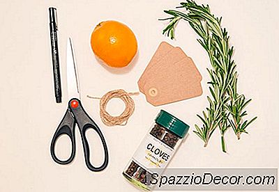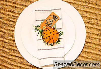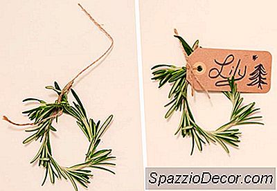Pasul 3: Faceți-i un pas mai departe pentru petrecerea de sărbătoare și combinați portocala cu o coroană de rozmarin pentru o carte de nume. Cum? Luați pur și simplu o rădăcină lungă de rozmarin și legați capetele împreună, fixând eticheta de hârtie kraft. Puneți portocala încrustată în cuișoare, deasupra rozmarinului, pentru o carte de nume cu aromă delicată.