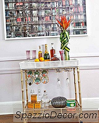 Adăugarea de bucăți unice, cum ar fi cutiile de aur și o serie de vase de mai sus, vă ajută, de asemenea, să faceți coșul de bar într-adevăr pop. "Șervețelele de cocteil de pânză sunt o atingere mică care poate merge mult, iar spiritele de cumpărare de la o distilerie locală mică sau locală pot oferi destul de multe ambalaje, precum și spiritele la fel de delicioase și unice", explică Roxy.