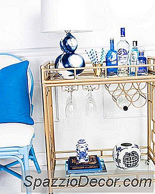 Organizarea nu este doar extrem de utilă atunci când realizați căruciorul, ci estetic plăcut. "Utilizați tăvile pentru a vă ajuta să împărțiți coșul de bara în zone și să dedicați fiecărei zone unui anumit element esențial, fie că este vorba de sticlă, sticle sau propriul menajer din alamă", spune Roxy. "Veți fi simultan elegant și organizat". Aceasta are o tavă drăguță cu model, care nu numai că completează albastrul moale al căruciorului, ci își păstrează conținutul neted și împreună.